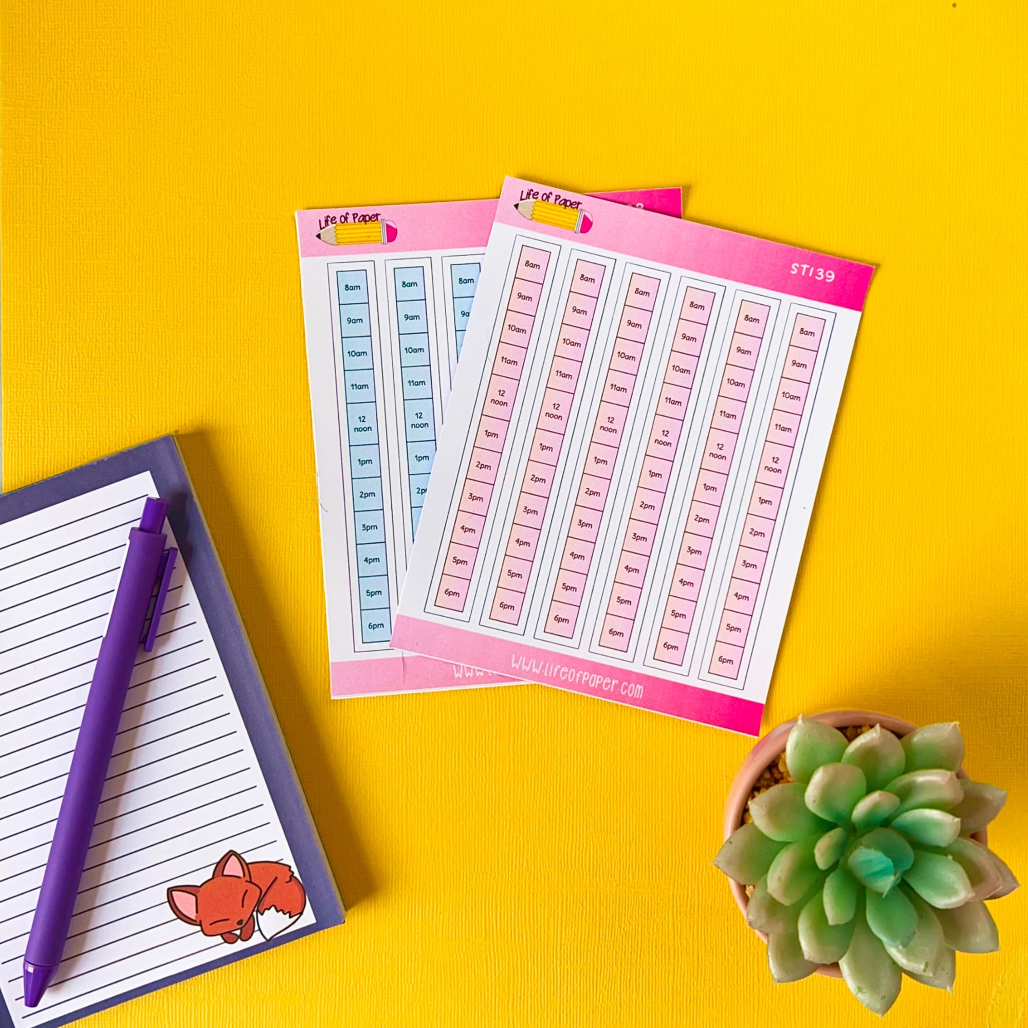 Daily timetable stickers designed for structuring your day efficiently and boosting productivity through organised time management. These versatile scheduling tools work for any day of the week, making them perfect for flexible planning needs. Great partners with the schedule planner sheets!